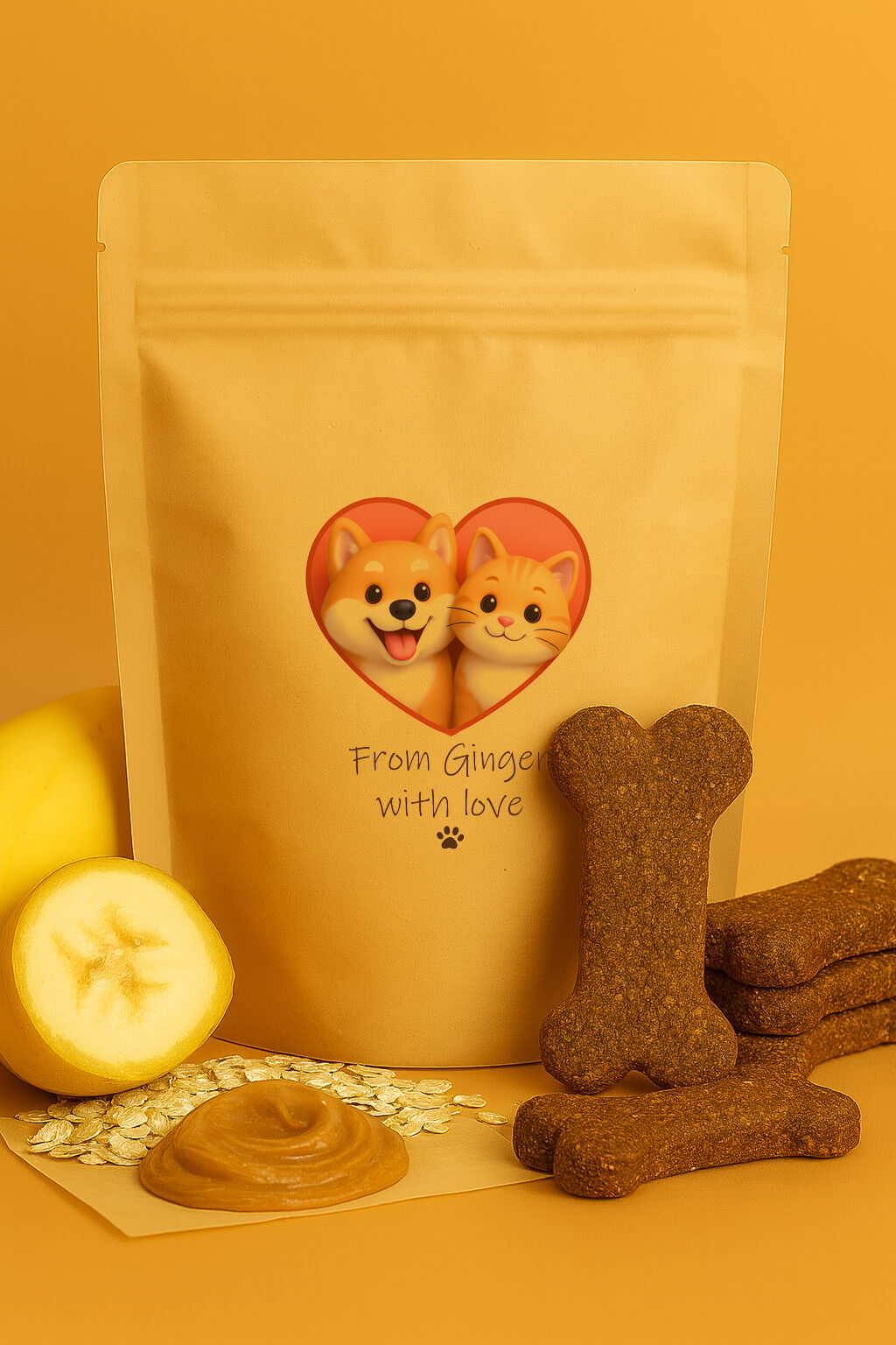Your pup’s new obsession starts here! Bark-nana Bites combine creamy peanut butter with ripe banana and wholesome oats into crunchy, tail-wagging cookies that make training (and spoiling) a breeze. Handmade in small batches right here in Canada, every bite is packed with natural sweetness and protein—no fillers, no artificial flavors, just ingredients you’d use in your own kitchen.